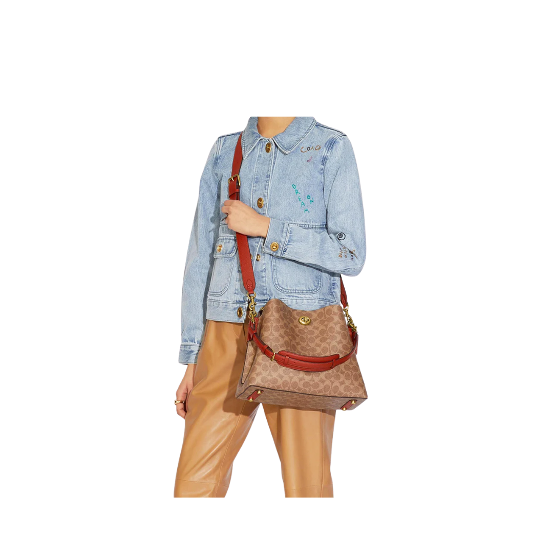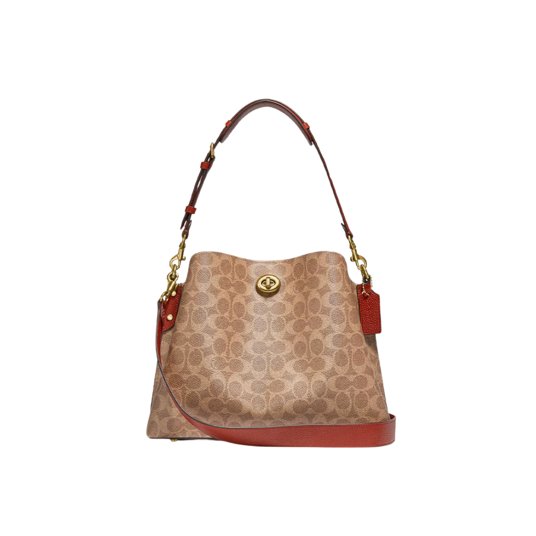 Coach Willow Shoulder Bag sign C Tan Rust New