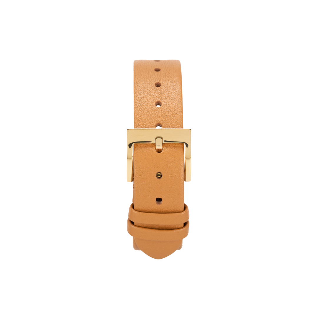 Jam tangan elegan ini terbuat dari kombinasi kulit asli dan stainless steel, dilengkapi dengan hardware warna emas dan strap buckle yang klasik. Desain analog dengan tiga jarum serta mesin quartz memastikan ketepatan waktu sekaligus tampil stylish.