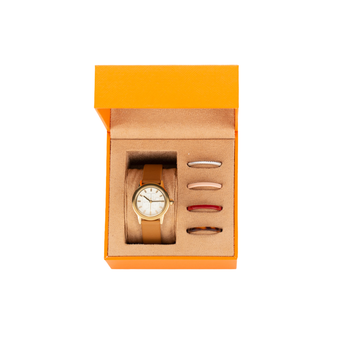 Tory Burch Gigi Watch Ring Set Leather Luggage New