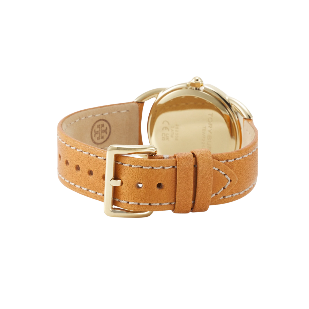 Tory Burch Watch Miller TBW7226 Ladies Glossy Cream Gold Dial Dual Tone Brown Leather Strap New